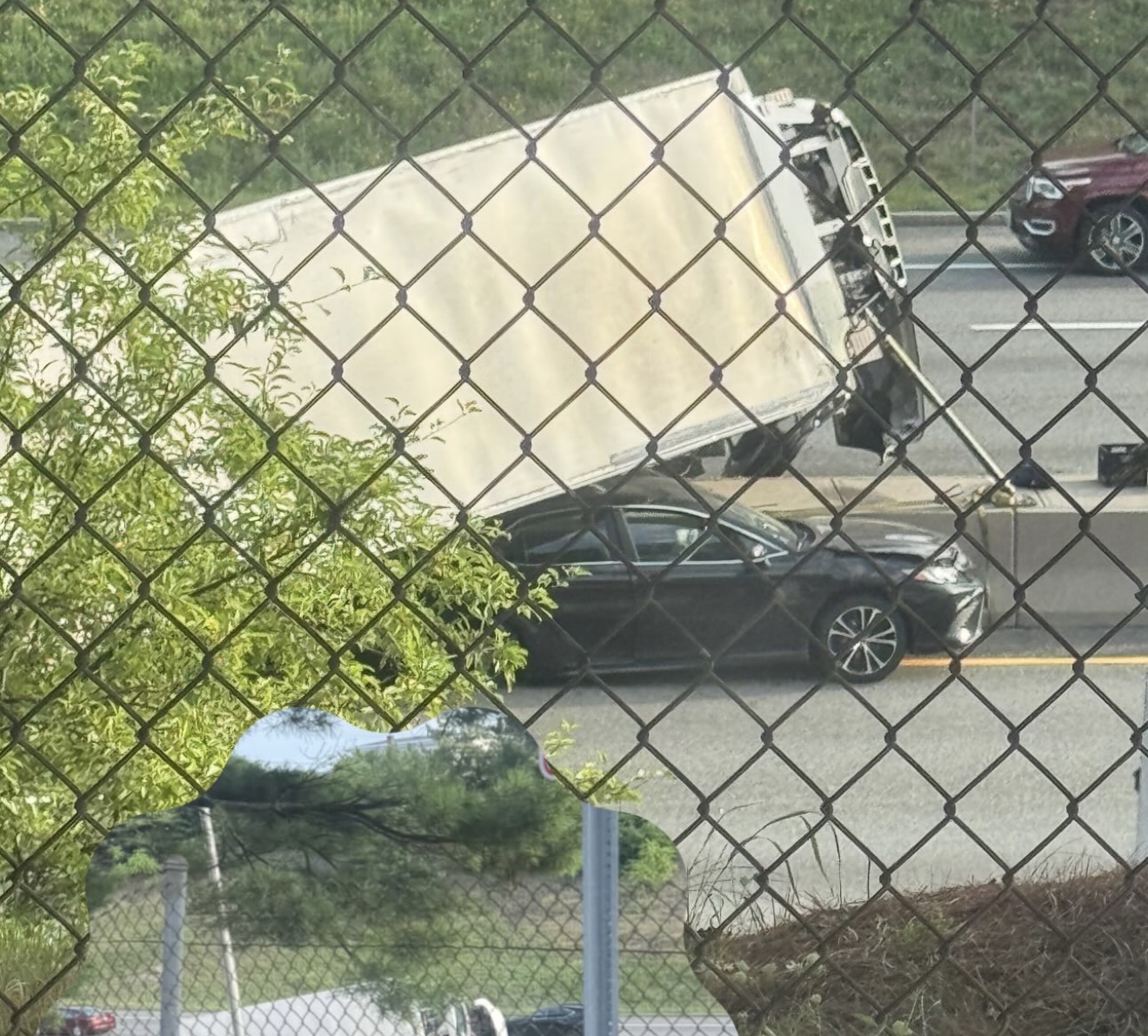 PAWTUCKET, R.I. — A box truck has hit the median and landed on top of a car on 95 N in Pawtucket near exit 41B (School Street). The median, left and ,left-center lanes are closed. Seek alternate route.