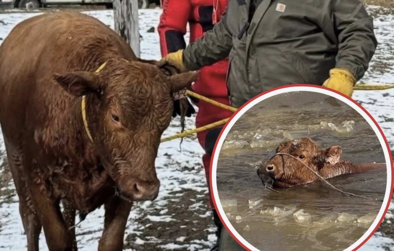 According to the Block Island Fire Department, the call came in shortly after 1:15 p.m. Crews responded quickly and used ice water rescue equipment to safely rescue the trapped cow.