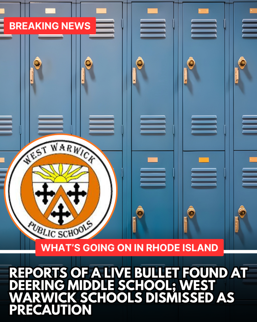 WEST WARWICK, R.I. — West Warwick Public Schools dismissed students at Deering Middle School (DMS) and West Warwick High School (WWHS) Friday morning after a live bullet was discovered inside the girls’ locker room at DMS, school officials confirmed.