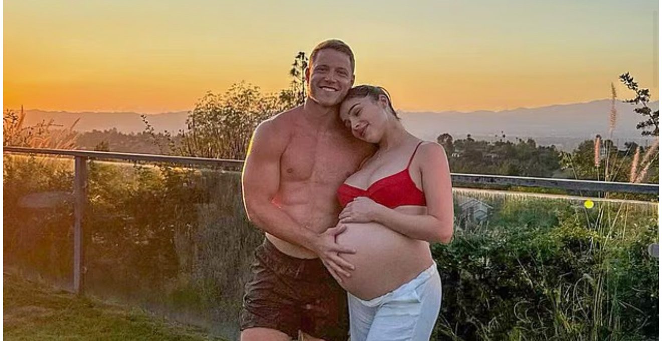 The former Miss Universe, 33, shared a carousel of photos from her Fourth of July celebrations, showing off her bare baby bump in a red bikini as she posed with McCaffrey, 29.