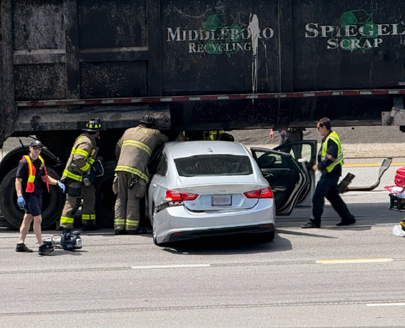 PROVIDENCE, R.I. — A serious crash around noon today on I-95 North in Providence caused a car to be trapped under a tractor trailer. The accident caused traffic backups starting at Exit 37 (Broadway).