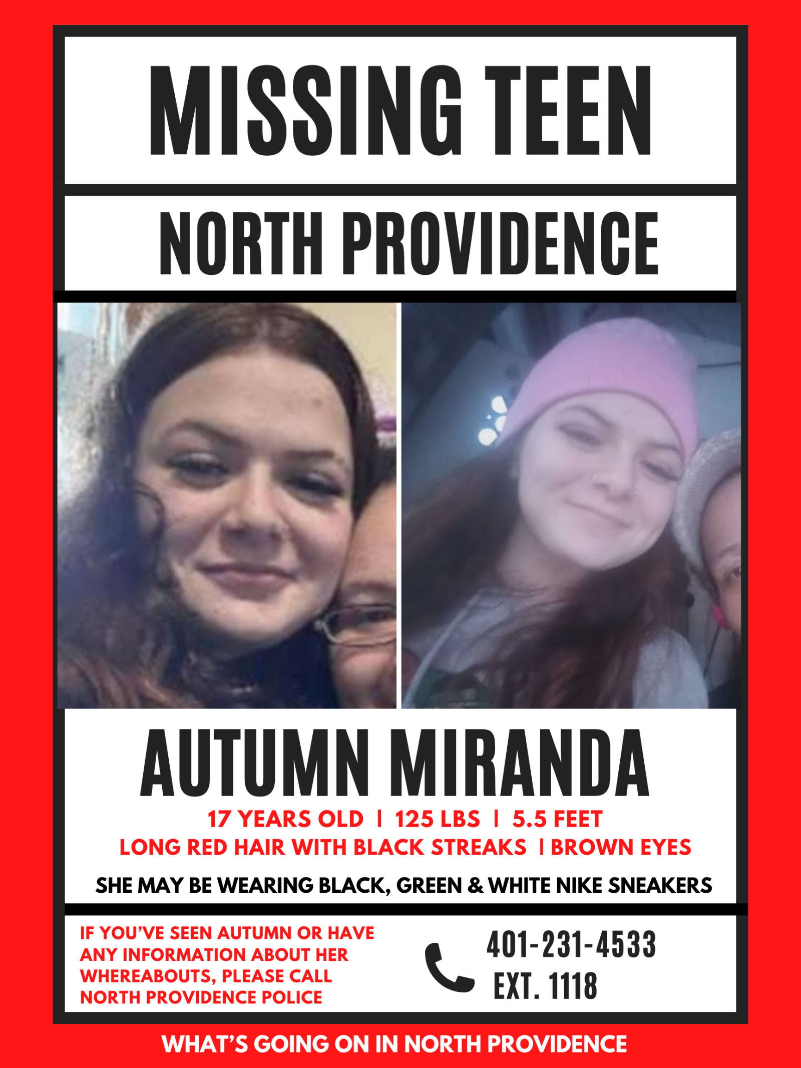 NORTH PROVIDENCE, R.I. — North Providence teen missing: Autumn Miranda, 17, was last seen at her home in North Providence on May 29. She was discovered missing early the following morning, May 30.