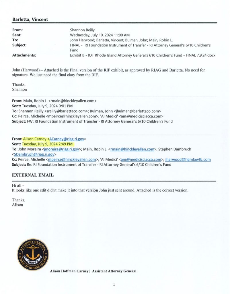 Back in 2022, under the Biden administration, the Rhode Island Foundation was receiving and distributing more than $80 million in federal funds each year to non-profits. In addition under certain circumstances the AG can direct monetary penalties to the Rhode Island Foundation. However, with all the funding the RI Foundation was already receiving, the AG’s office had little reason to settle for Barletta’s $10 million offer when they believed they could extract more.