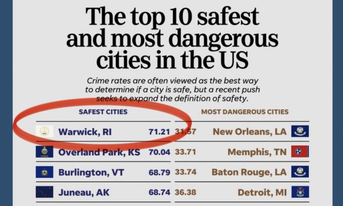Bywhatsgoingonri1January 12, 2026WARWICK, R.I. — Warwick has earned a spot at the top of a new national ranking of the safest cities in the United...